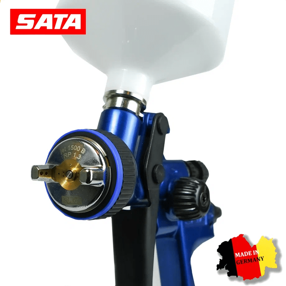 SATAjet 1500 B RP 1.3: Оптимальный выбор для большинства прозрачных лаков. Дюза 1.3 мм обеспечивает тончайший распыл, что позволяет достигать идеальной гладкости поверхности без лишнего наслоения материала.