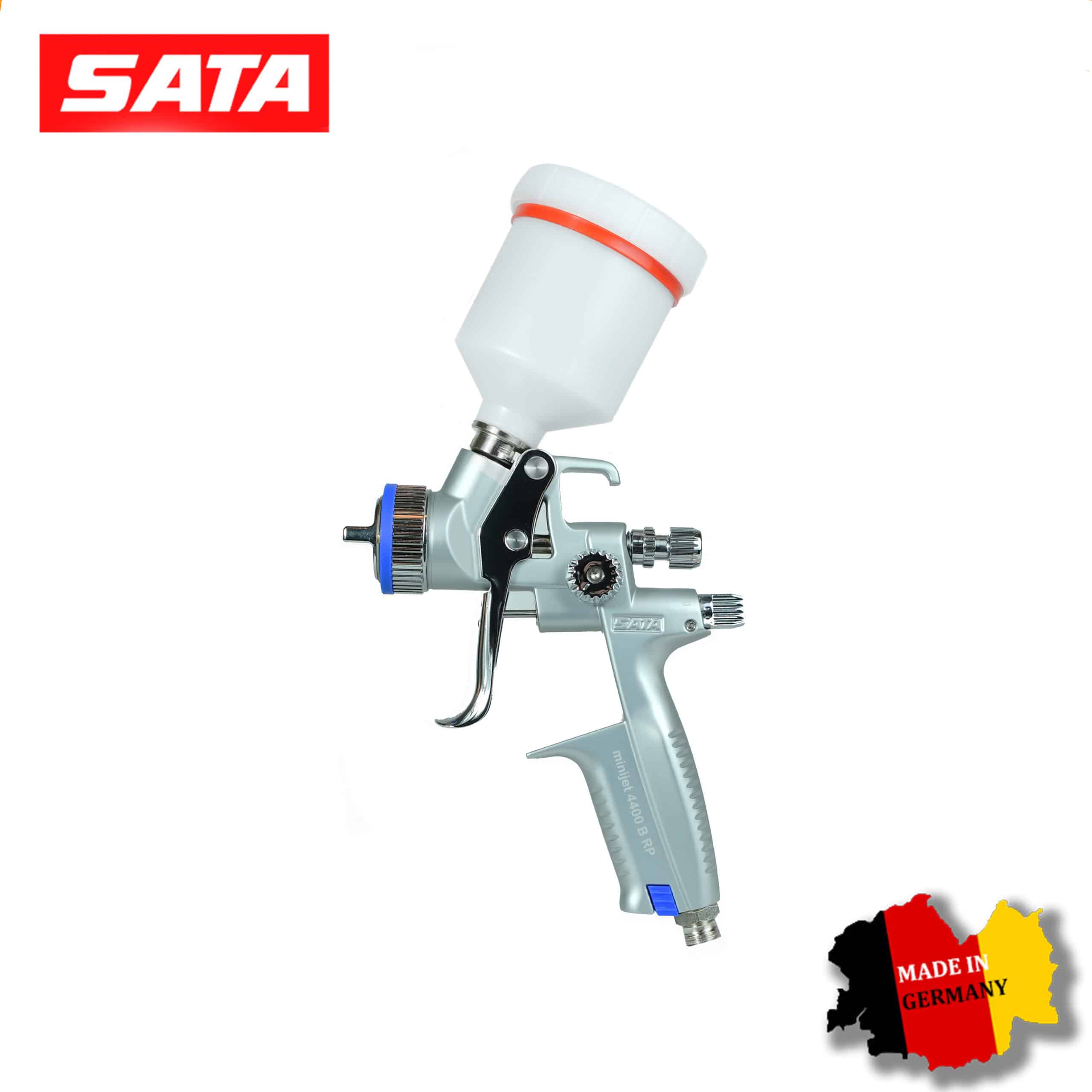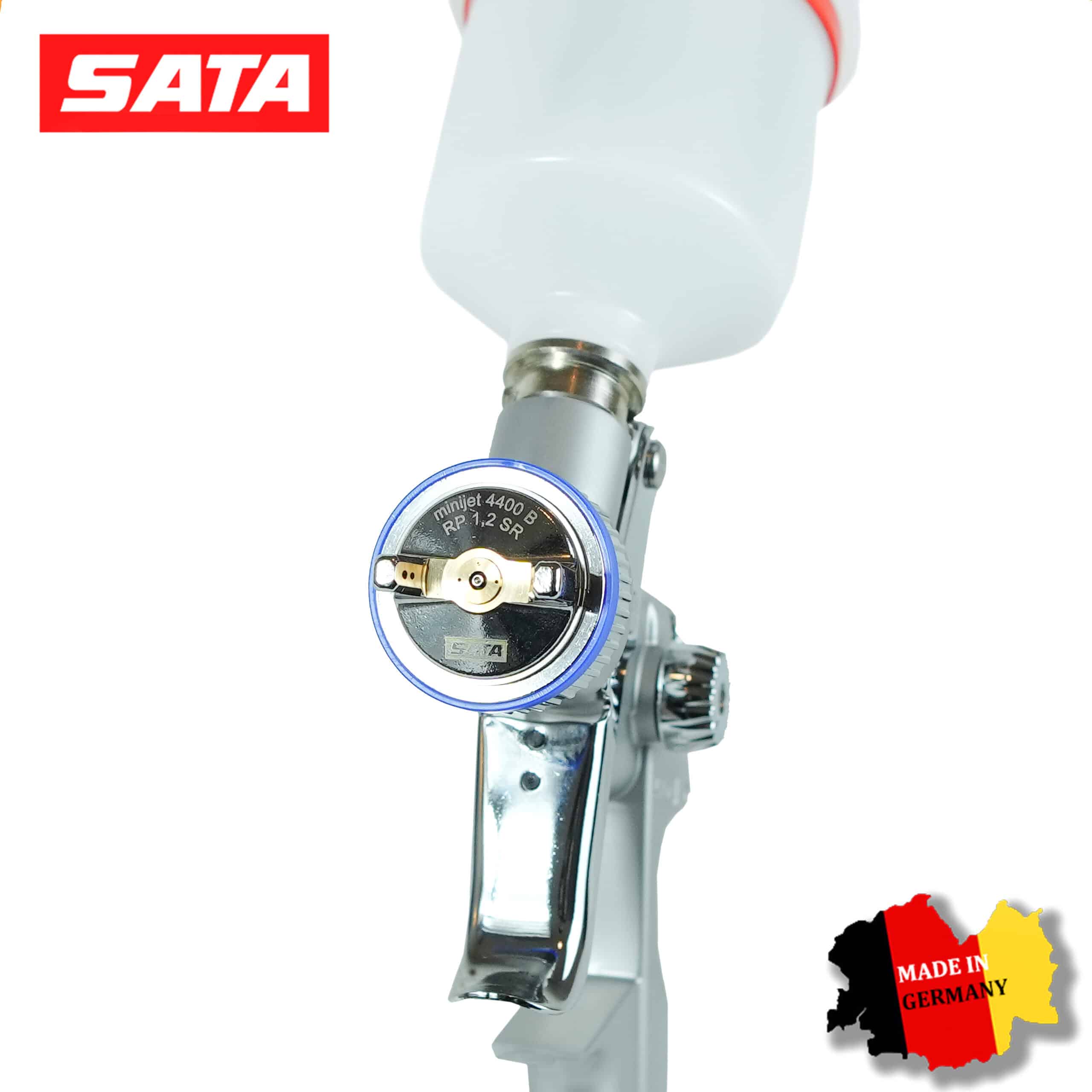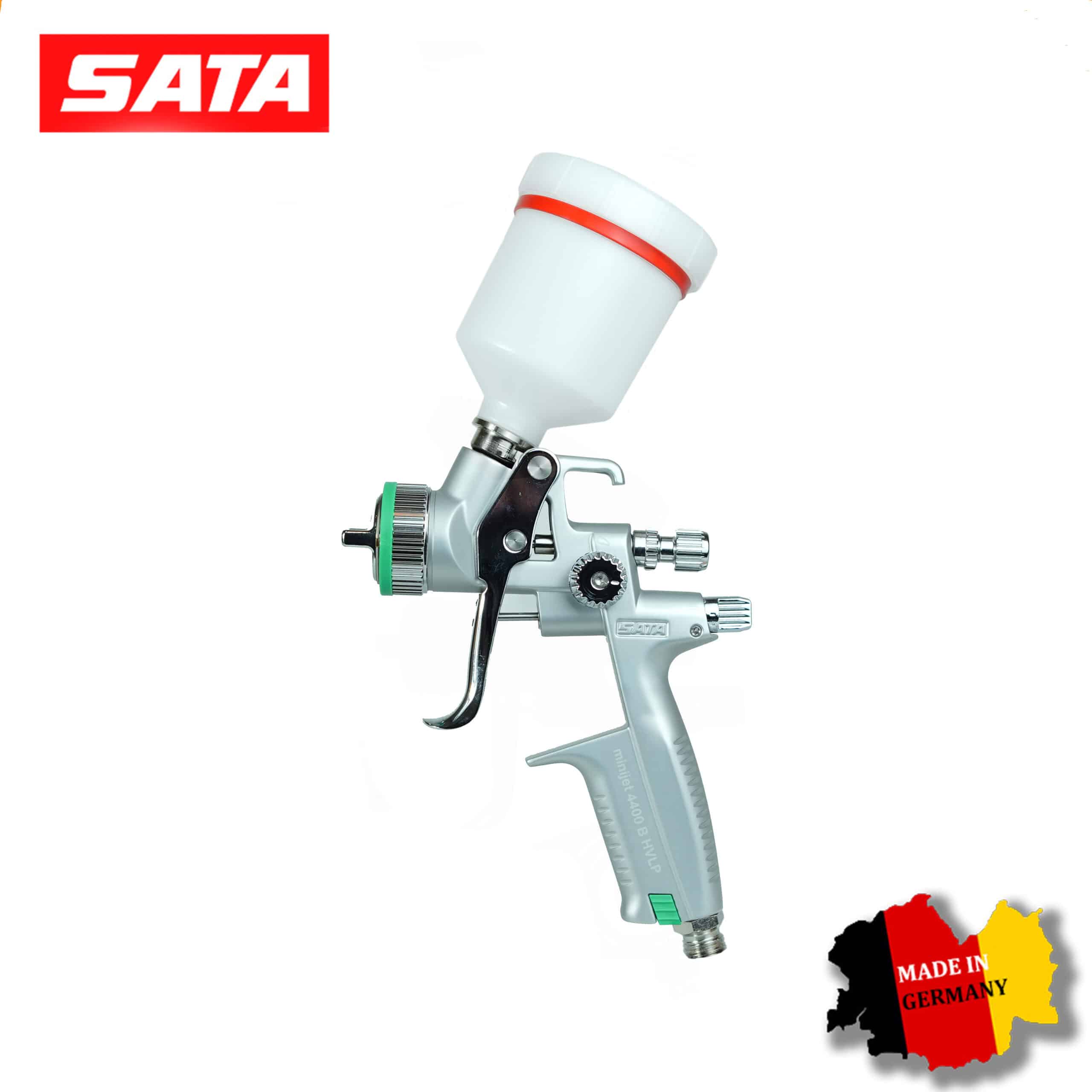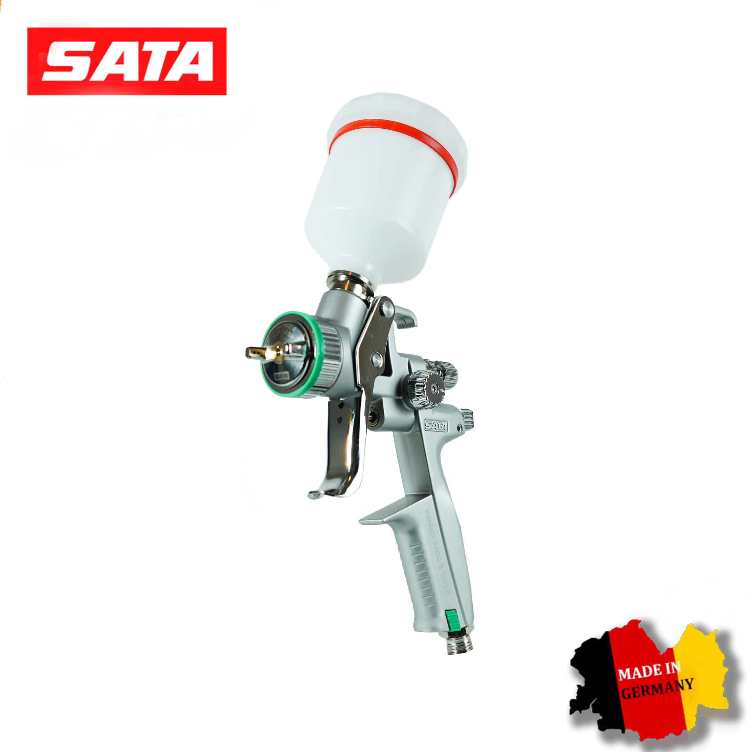SATAminijet 4400 B HVLP 1.0 SR: Модель с технологией низкого давления. Идеальна для нанесения базовых эмалей (металликов и перламутров). Дюза 1.0 SR (Spot Repair) формирует мягкий факел, который исключает образование темных пятен и «яблок» на границах перехода.