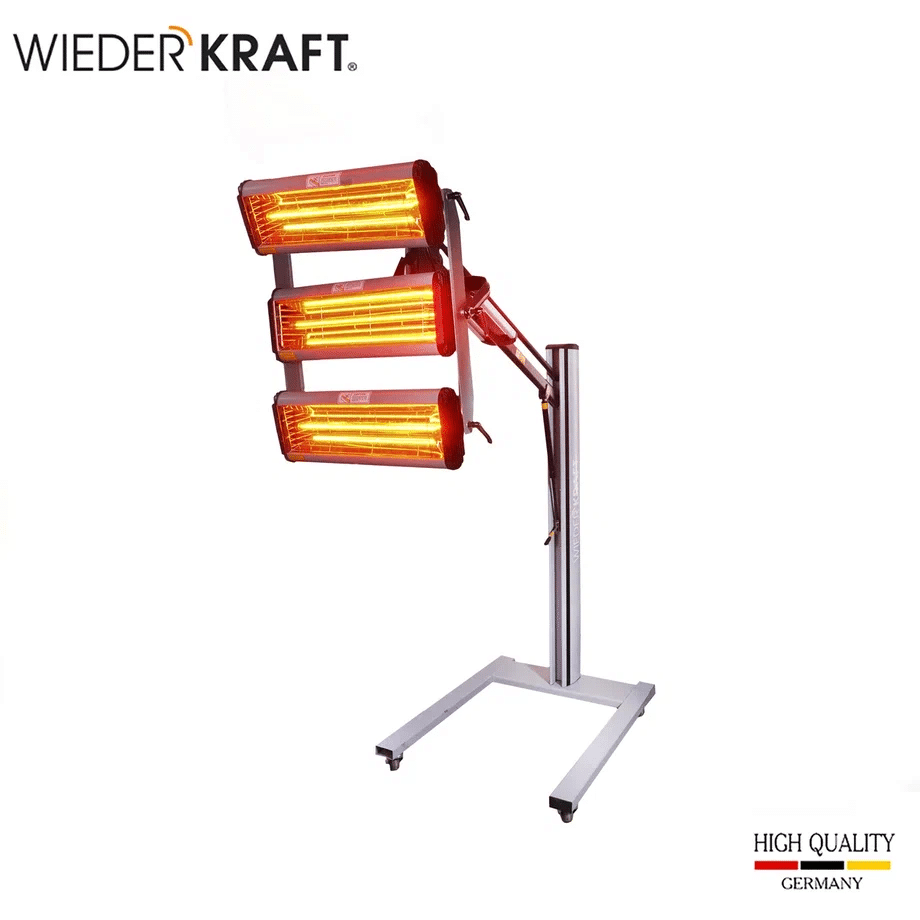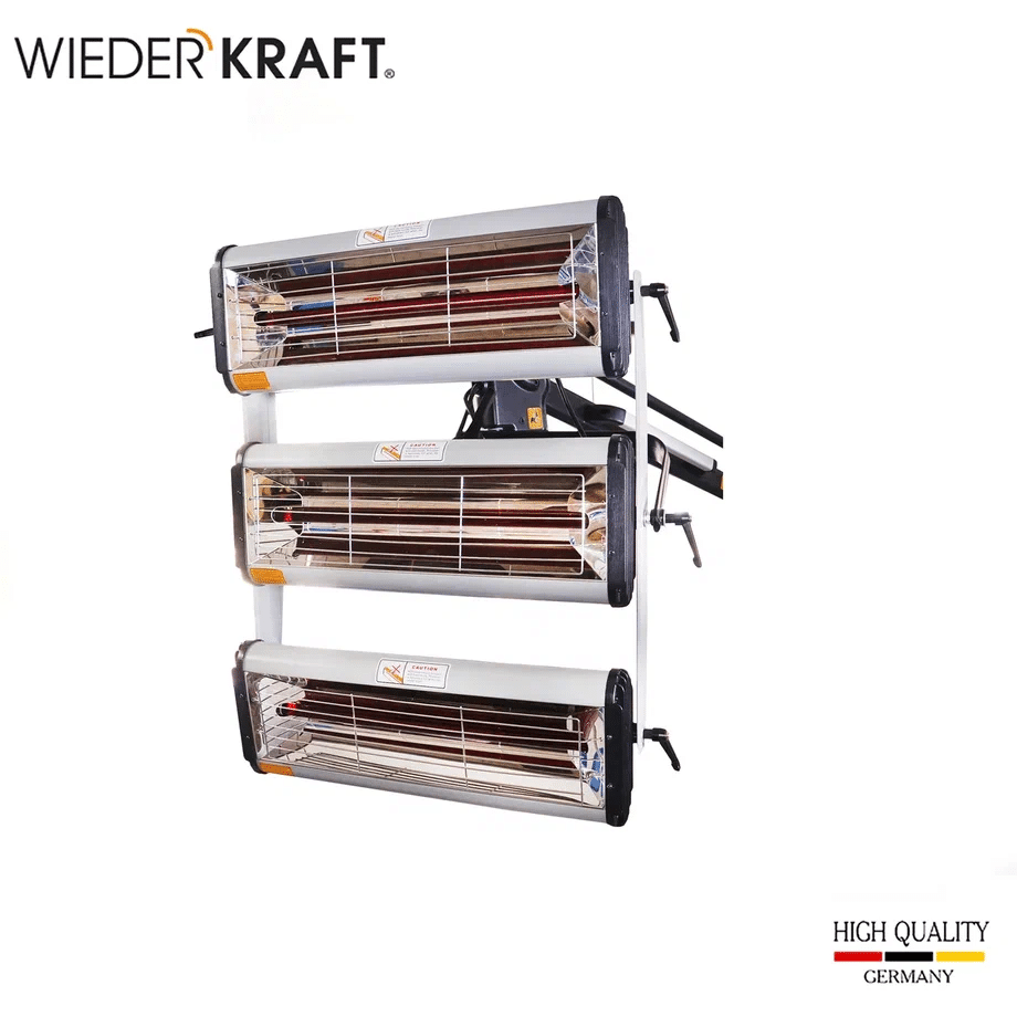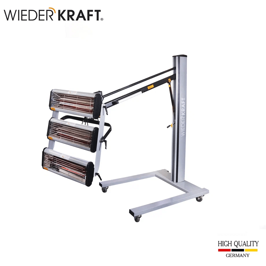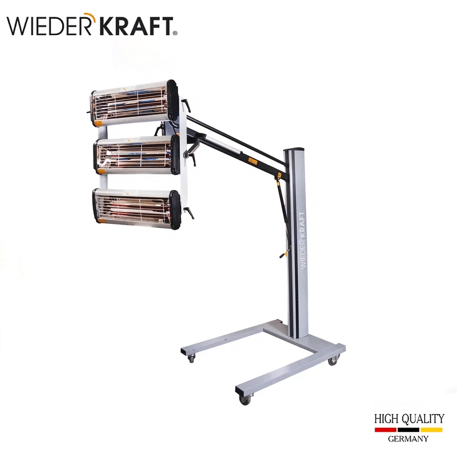 Мощный тепловой поток: Три излучателя по 1000 Вт и лампы длиной 50 см обеспечивают глубокое проникновение ИК-волн, высушивая поверхность «от металла», что исключает усадку материала в будущем.