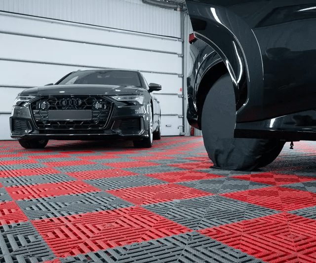 Напольное покрытие SGCB Grating Plastic Floor Sheet 3.0 Red повышает как удобство работы в автомастерской, студии детейлинга, моечной станции, так и эстетическую привлекательность помещения в целом. Благодаря вариабельности цветов плит можно зонировать рабочее помещение.