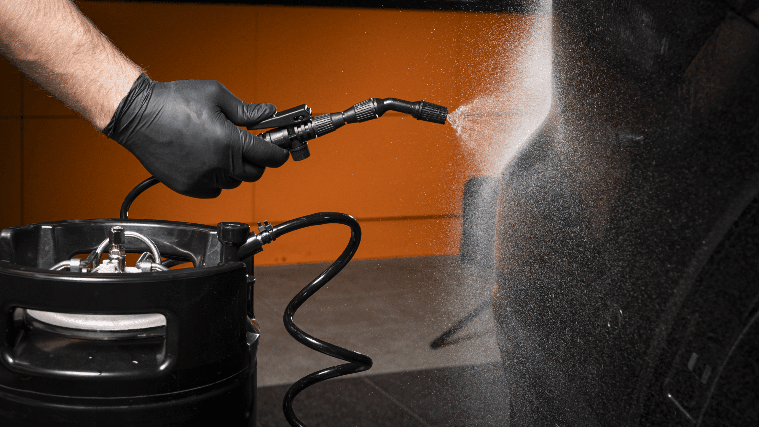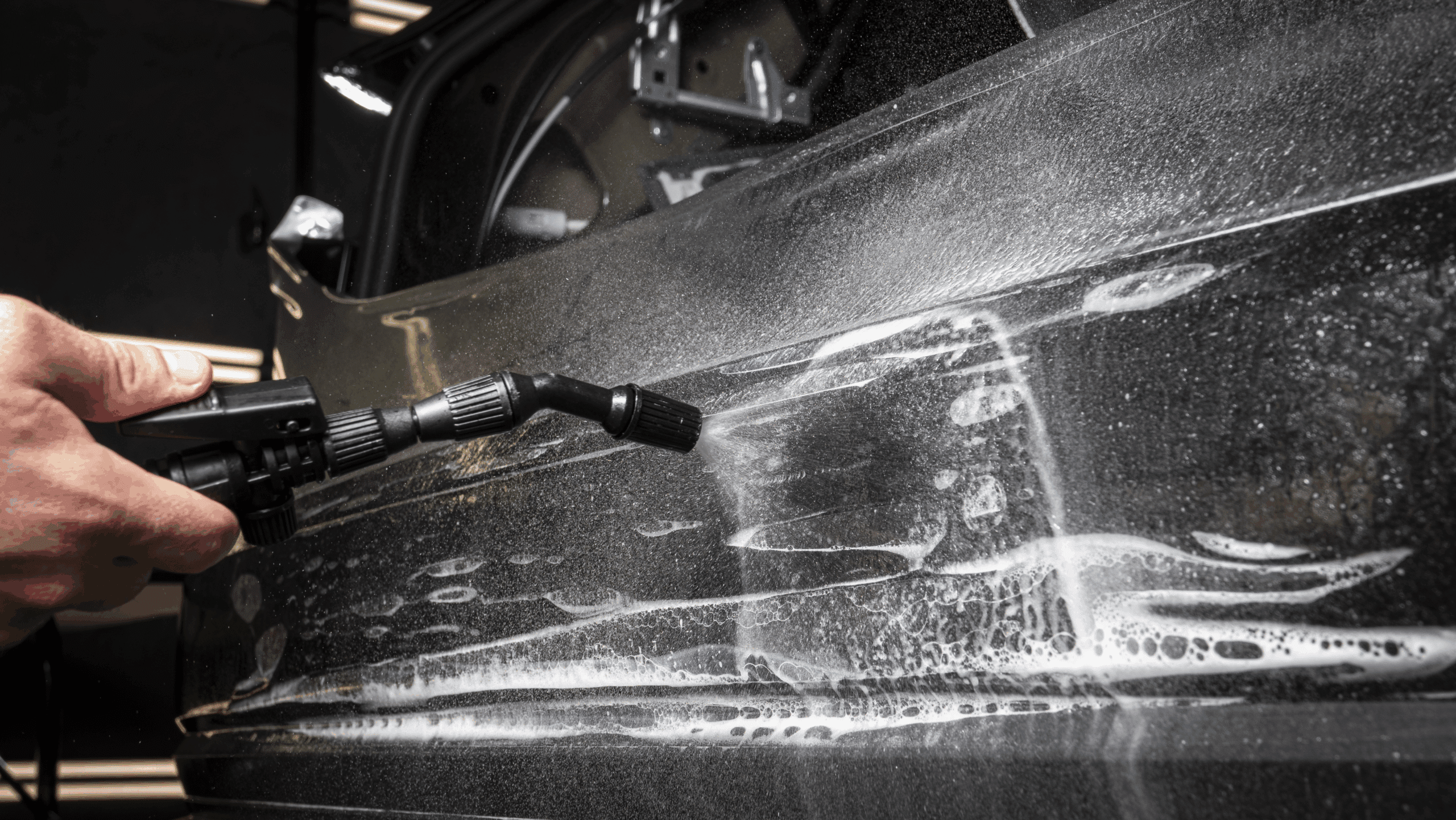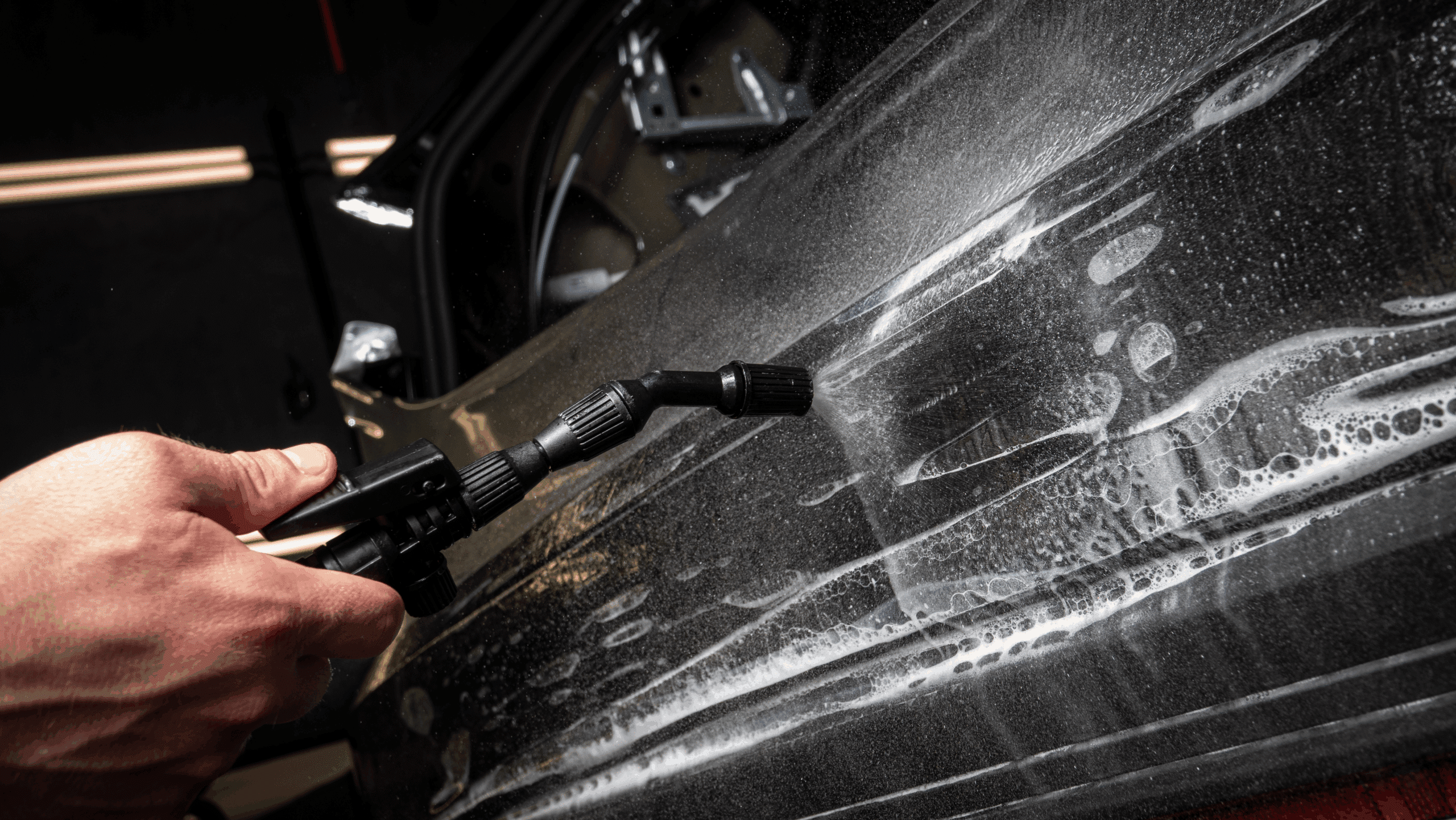 Для начала работы достаточно залить в бак мыльный раствор, с помощью компрессора закачать воздух, после чего подключить шланги. В набор входит гибкий шланг длиной шесть метров и прямой длиной четыре метра соответственно, которые облегчают доступ к различным частям автомобиля, обеспечивая свободу движений. У каждого шланга – регулируемое сопло, с помощью которого можно настроить нужный угол распыления жидкости. Это особенно важно для правильной инсталляции PPF-плёнок.