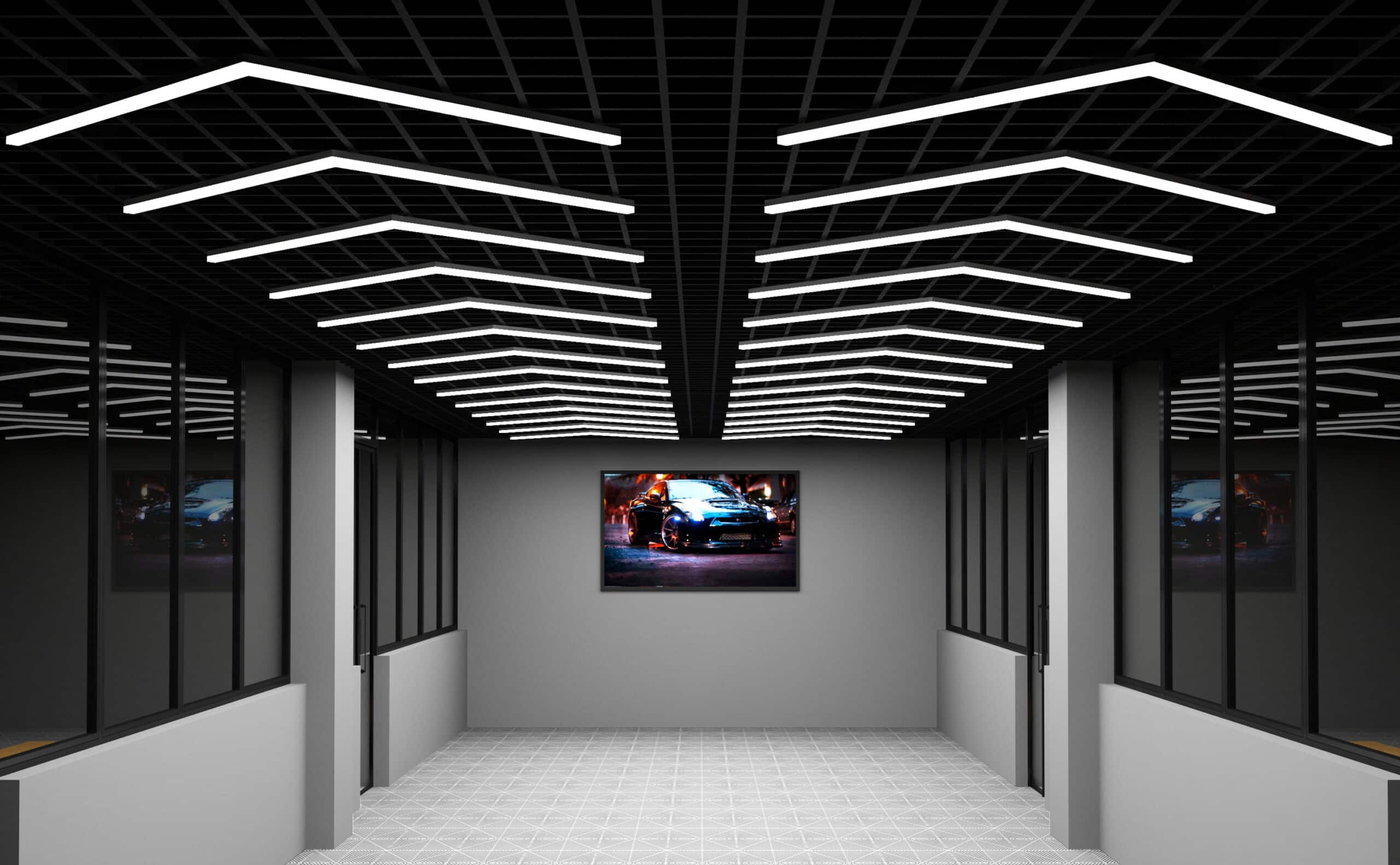 SMC Detailing Arrow – система LED-подсветки в форме стрелки с цветовой температурой 6500К для освещения студий детейлинга, малярных цехов, автомастерских, офисных помещений. Она используется там, где нужно равномерное освещение без теней и эффекта стробоскопа. Состоит из двух LED-планок длиной 1175 мм, скрепляемых между собой 2-х пиновым коннектором пол углом 120°.