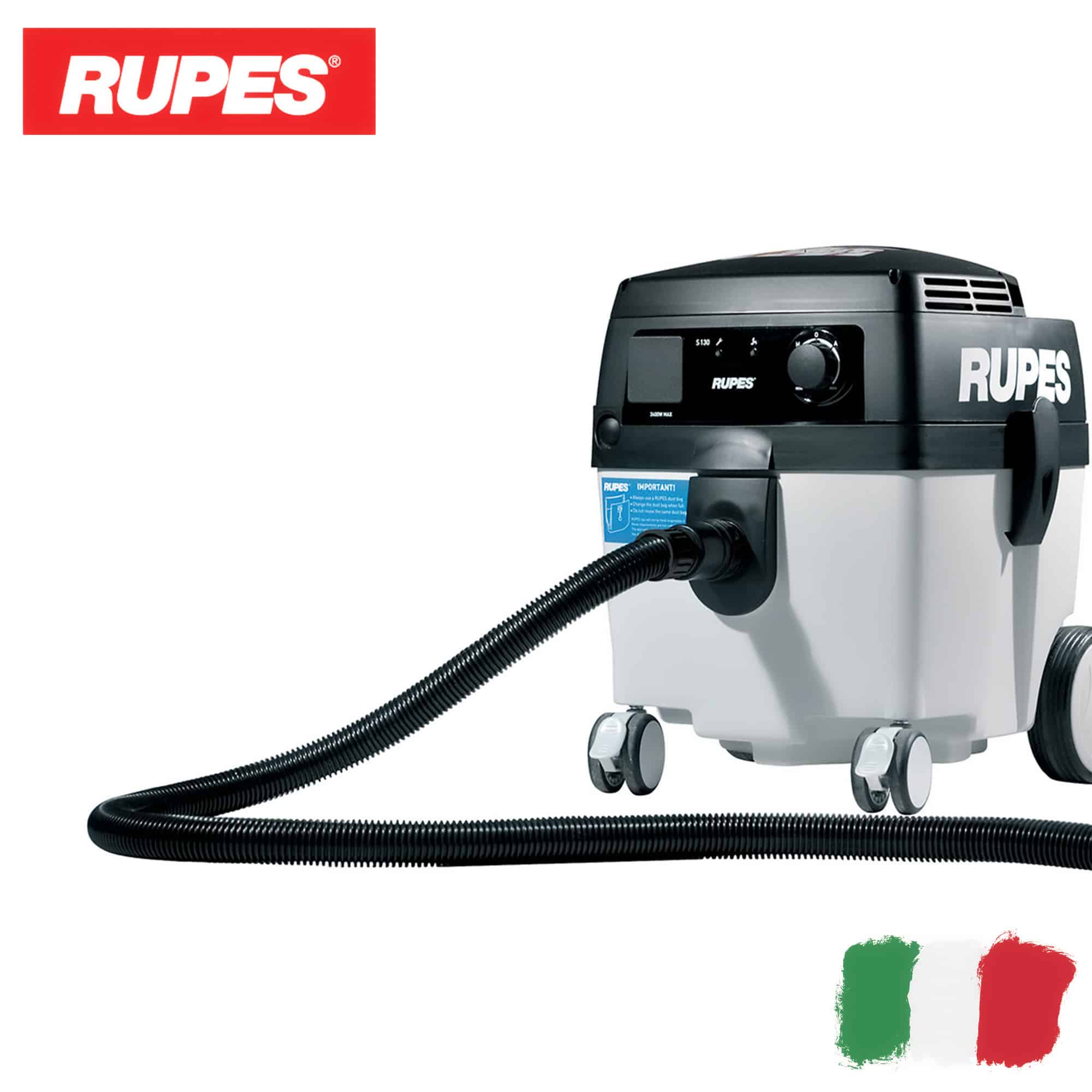 RUPES S130L — профессиональный промышленный мобильный пылесос для сбора пыли в процессах шлифовки и зачистки поверхностей. Оснащен системой самоочистки фильтров SCS (Self Cleaning System) с кассетами, которые обеспечивают эффективную фильтрацию пыли и поддерживает высокую производительность пылесоса.