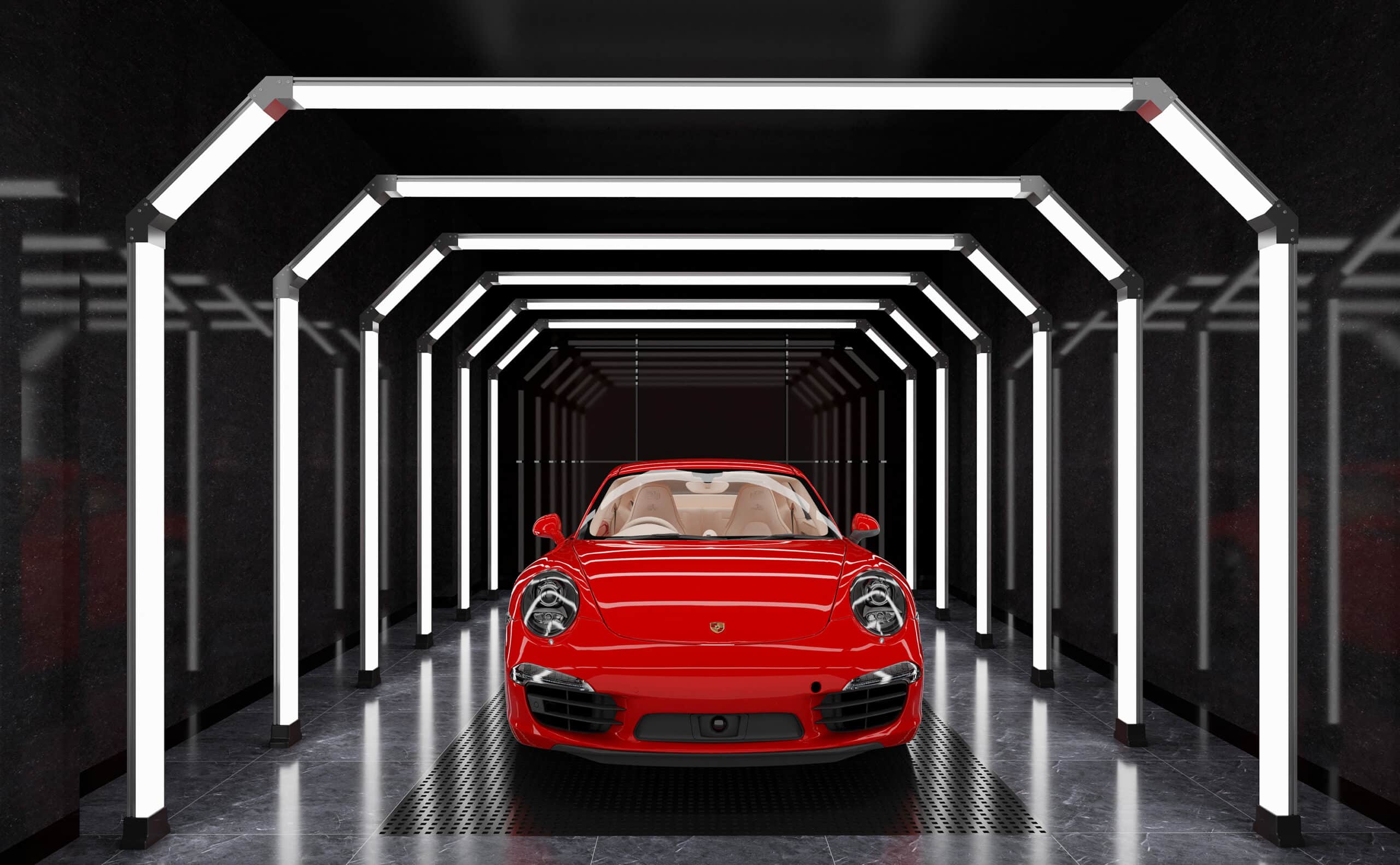 SMC LED Lighting Tunnel – туннельная светодиодная система, состоящая из 6 светодиодных дуг для освещения студий детейлинга, покрасочных цехов, автомастерских и других промышленных помещений. Она обеспечивает равномерный поток белого света с цветовой температурой 6500 К, а также освещение во всех трех плоскостях без теней и эффекта стробоскопа.