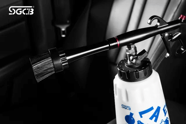SGCB Car Cleaning Gun — многофункциональный чистящий пистолет со щёткой с эффектом торнадо. Очистка труднодоступных мест, таких как: вентиляционные отверстия, проемы, углубления с легкостью выполняются при помощи насадки в виде щетки. Комплектуется адаптером для подключения быстросъёмного соединения, который поворачивается на 360 градусов, что увеличивает удобство использования.
