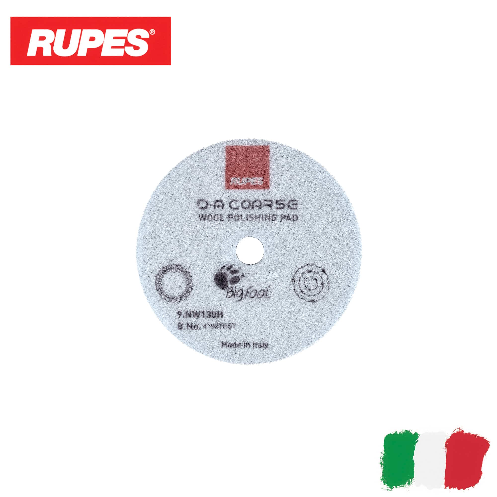 RUPES D-A Coarse Wool Polishing Pad NW130H – полировальный круг из жёсткой шерсти, разработанный для работы совместно с эксцентриковыми полировальными машинами. Допускается использование с планетарными устройствами. Подходит для быстрого и эффективного устранения грубых дефектов лакокрасочного покрытия и следов матирования, в том числе твёрдых лаков. Наилучшие результаты показывает с полировальными пастами RUPES D-A Coarse, RUPES D-A Fine. В некоторых случаях, в сочетании с пастой RUPES Uno Protect, может использоваться для одношаговой полировки.