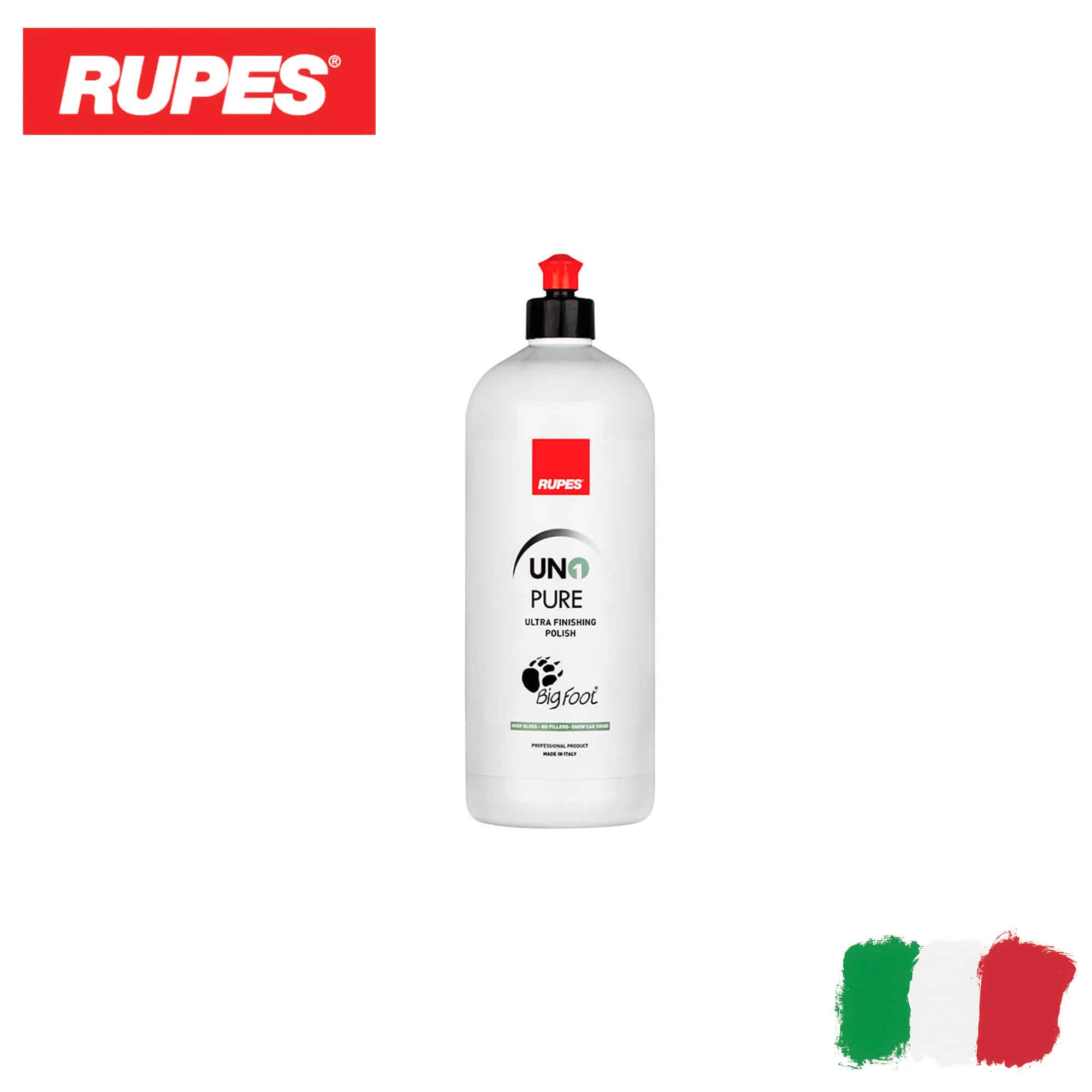 RUPES Uno Pure 1 L – ультрамягкая финишная полировальная паста на основе мелкофракционного абразива без наполнителей и силиконов. Она разработана специально для применения в ситуациях, где требуется максимальное качество отделки: глубокий блеск, отсутствие голограмм, паутинки и микроскопических рисок, особенно на чувствительных лакокрасочных покрытиях, включая чёрные и тёмные оттенки.